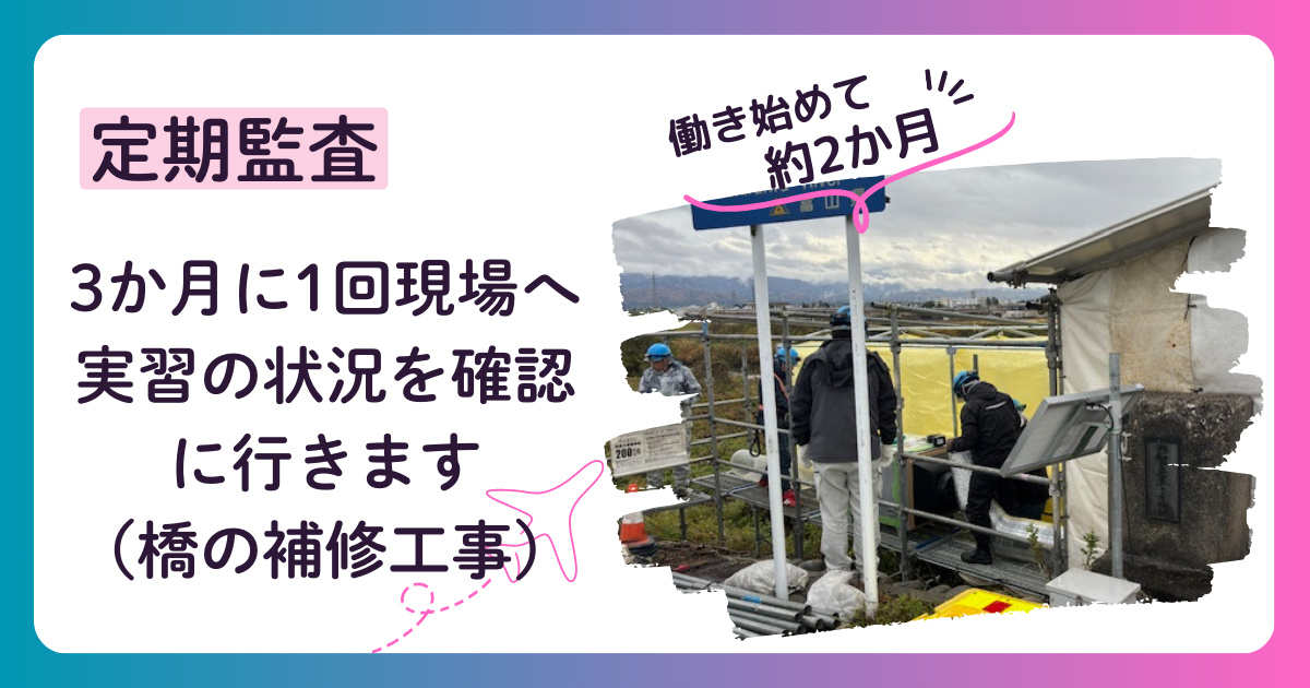 技能実習生1号は毎月の訪問指導と3か月に1回の定期監査があります。